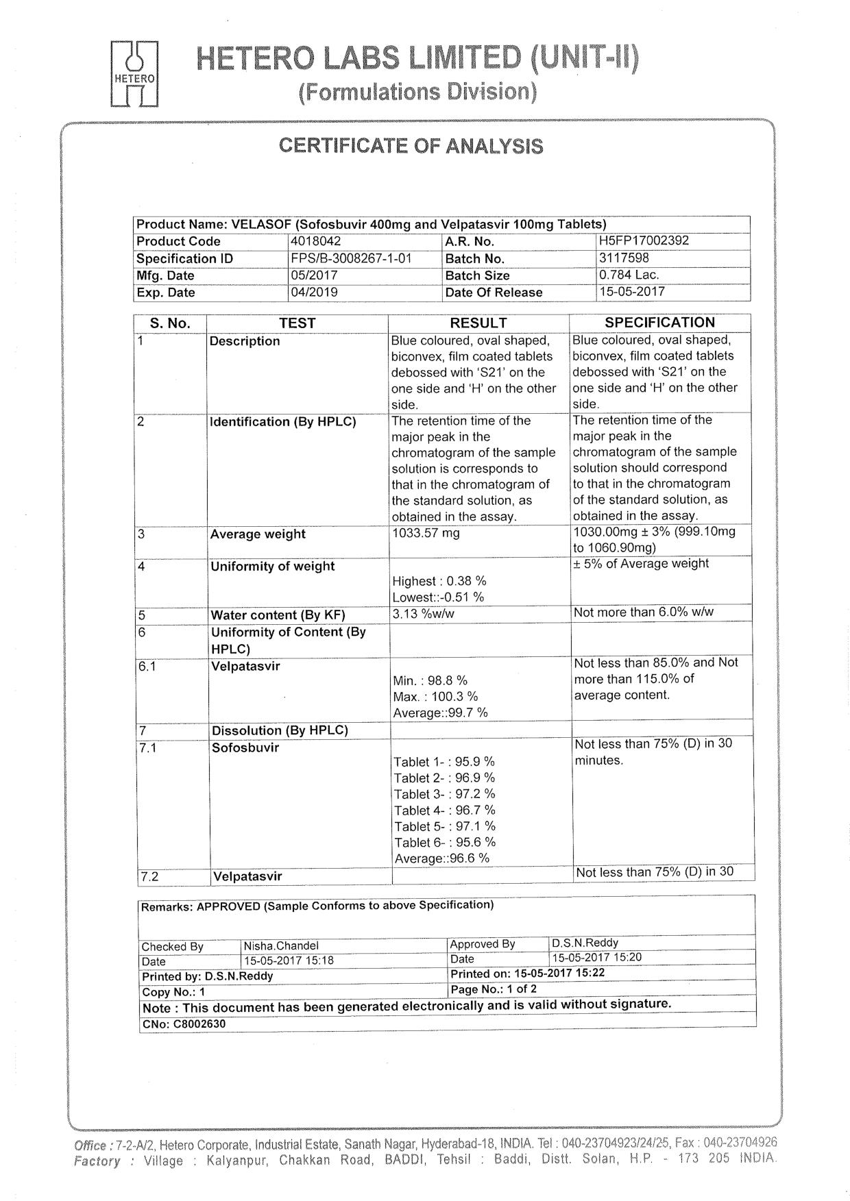 Velasof – это недорогой аналог (дженерик) лекарства Epclusa. Производит медикамент фармацевтическая компания из Индии Hetero Labs limited («Хетеро»), которая считается лидером по выпуску качественных аналогов.